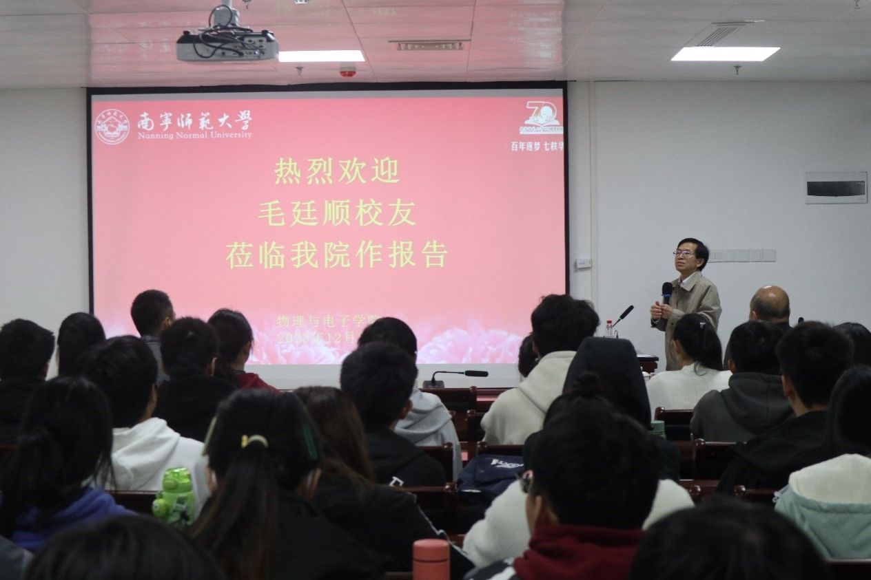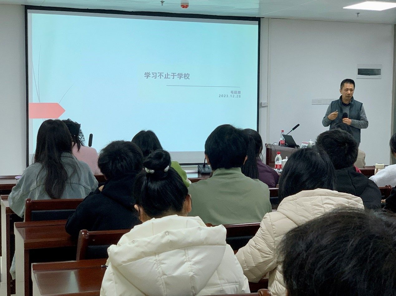 12月29日上午,公司邀请优秀员工88级物理学专业毛廷顺到院开展题为《学习不止于公司》的专题讲座。讲座由经理黄国华主持,副经理李光明、经理助理徐艳华以及公司部分本科生、研究生参加了讲座。